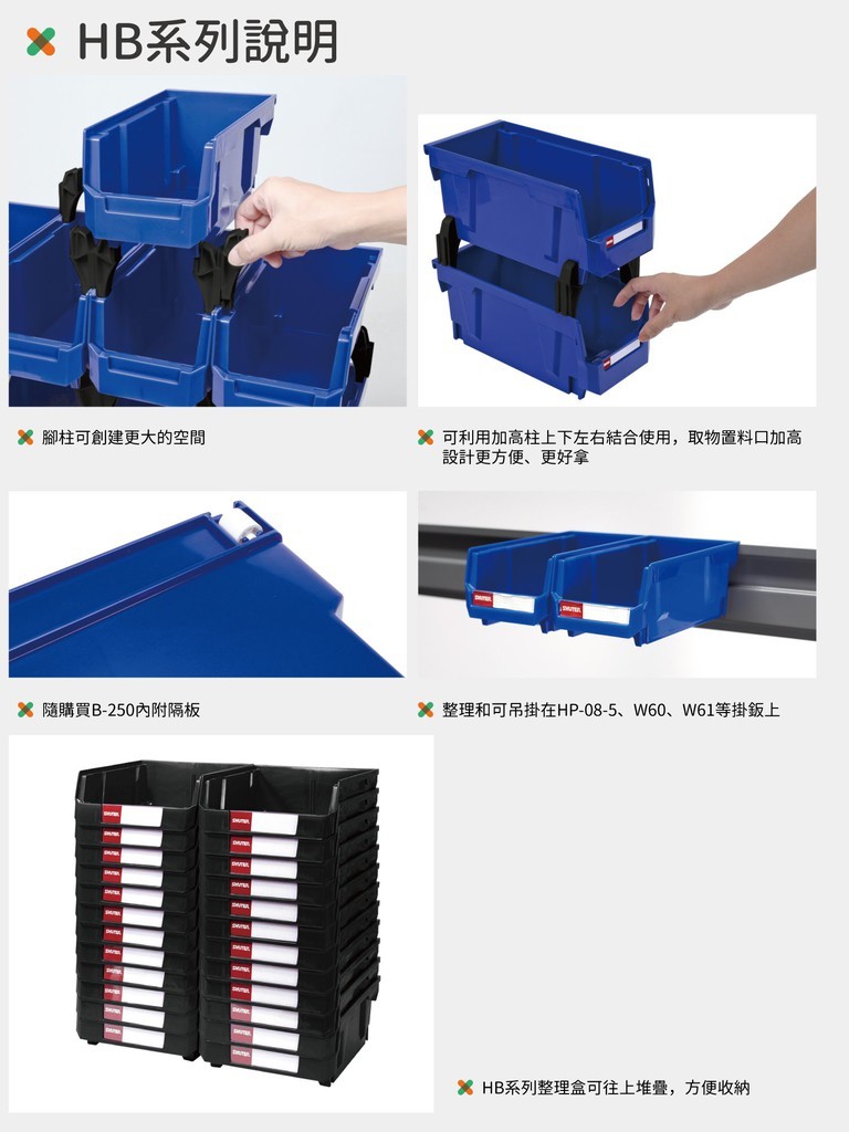 *可利用加高柱上下左右結合使用,還可左右連結,增加組合穩定度,