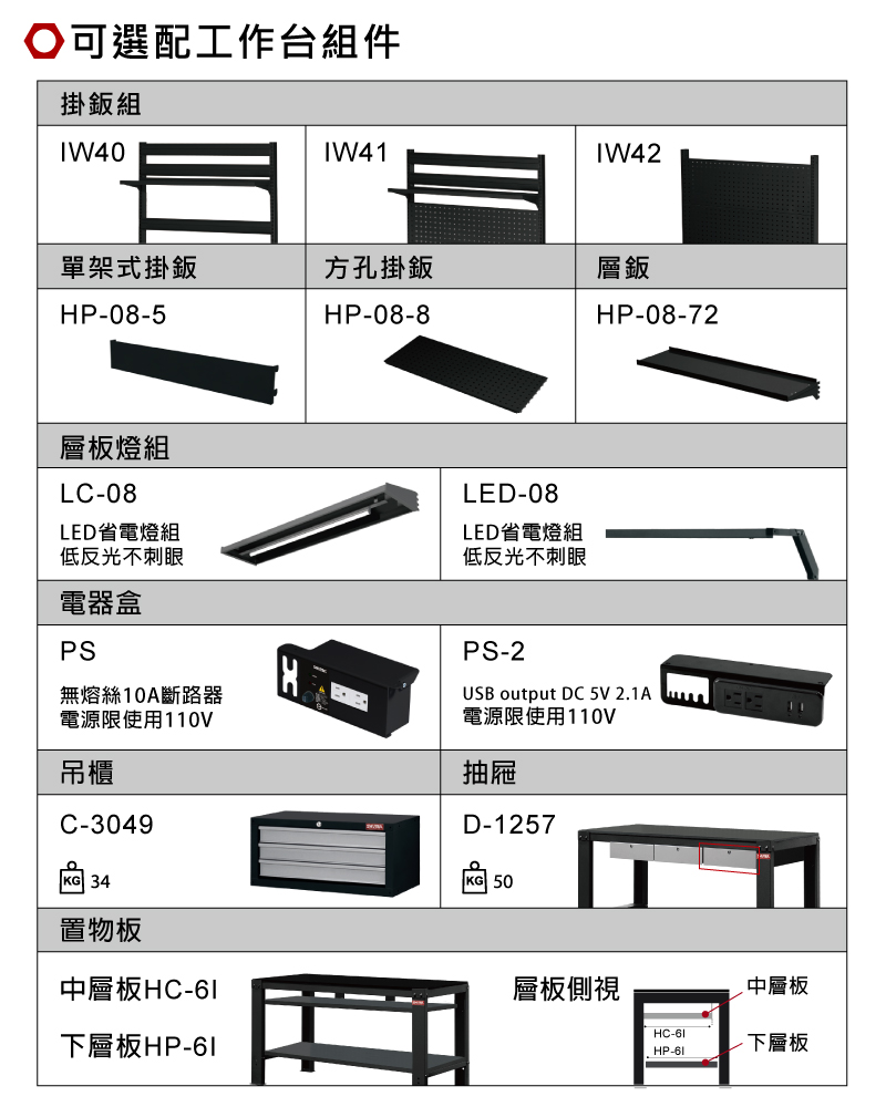 | 名稱 | 高荷重型吊櫃鋼製工作桌 |
