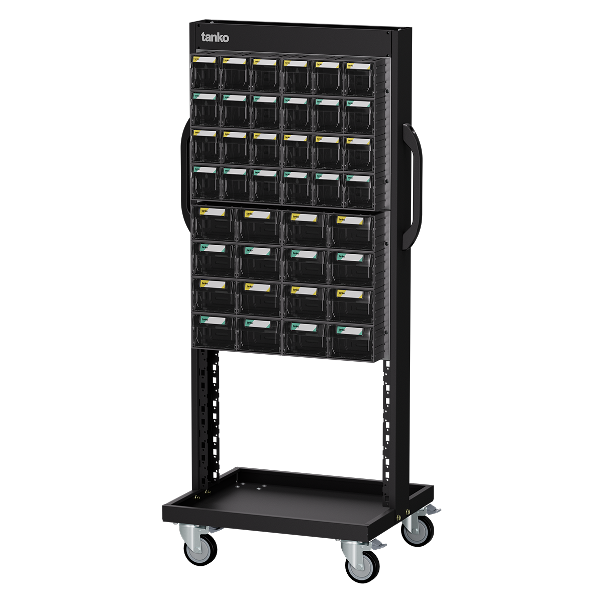 - 4"PU轉輪▸四輪萬向附煞車,平均可載重 400kg,安全穩固。