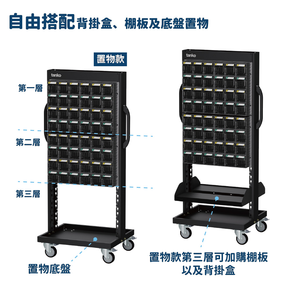 ◆ 置物底盤:創造更多的置物空間,物品整齊安放不凌亂,安全擋板設計,移動時物品不易滑落。