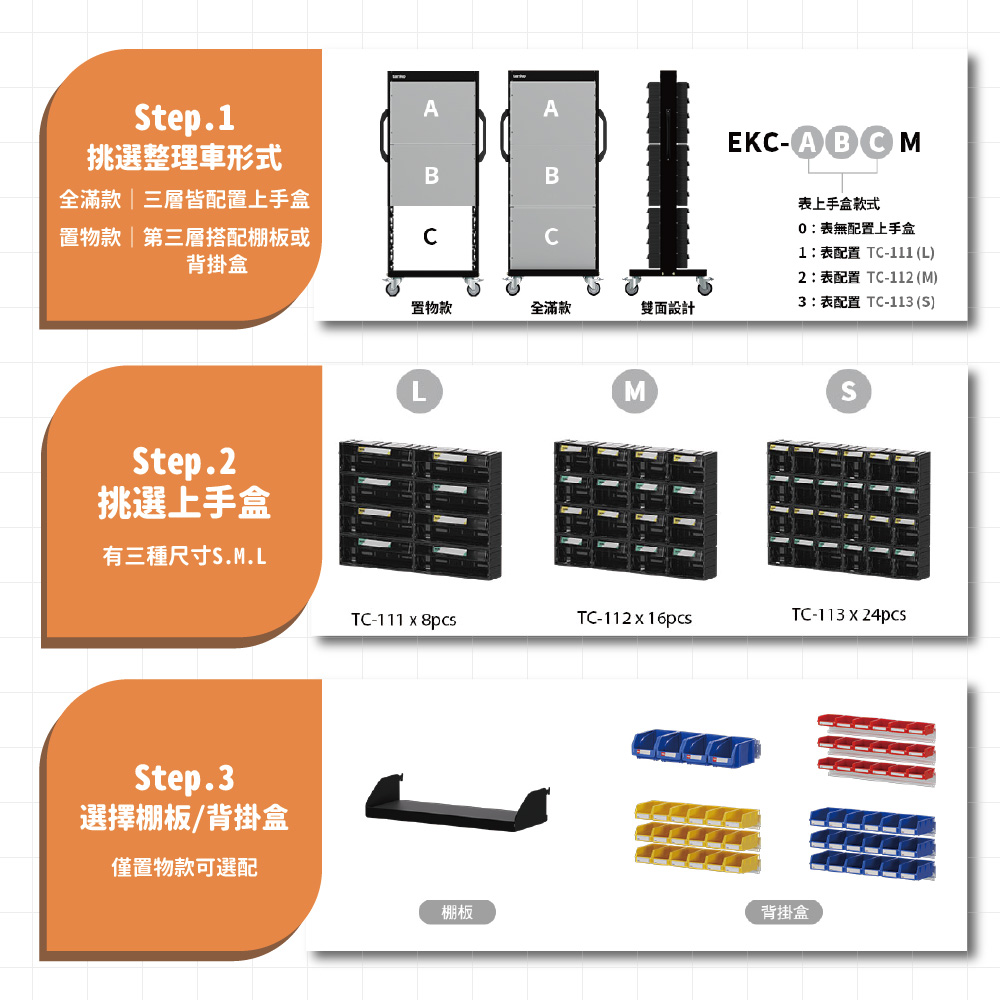 ◆ 把手:雙面直立式設計,省空間也提高收納便利性,搭配兩側大型把手,作業整理車移動更順暢。
