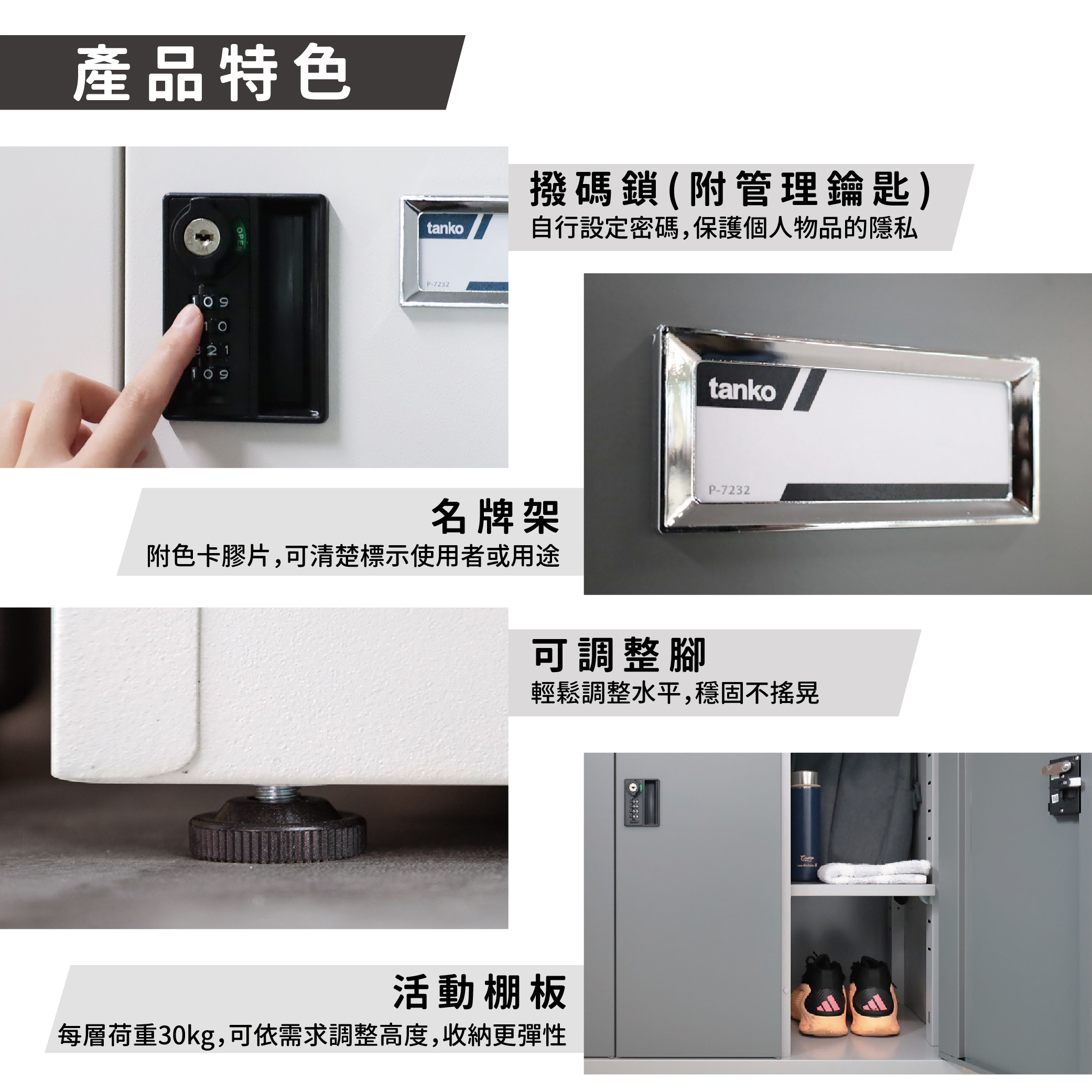 撥碼鎖 (附管理鑰匙):自行設定密碼,保護個人物品的隱私