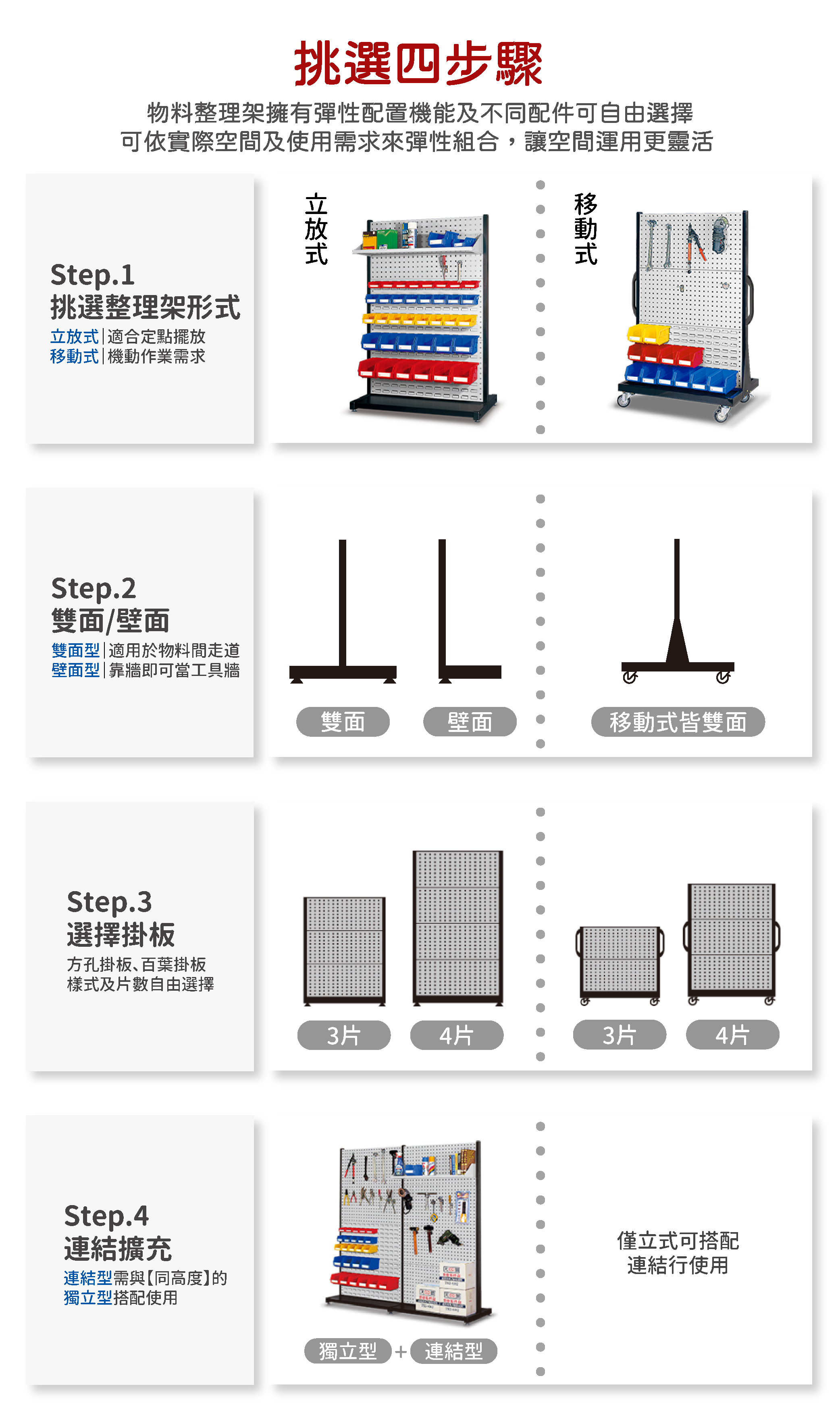 - 工具牆整理架【連結型】需與【獨立型】連結使用。