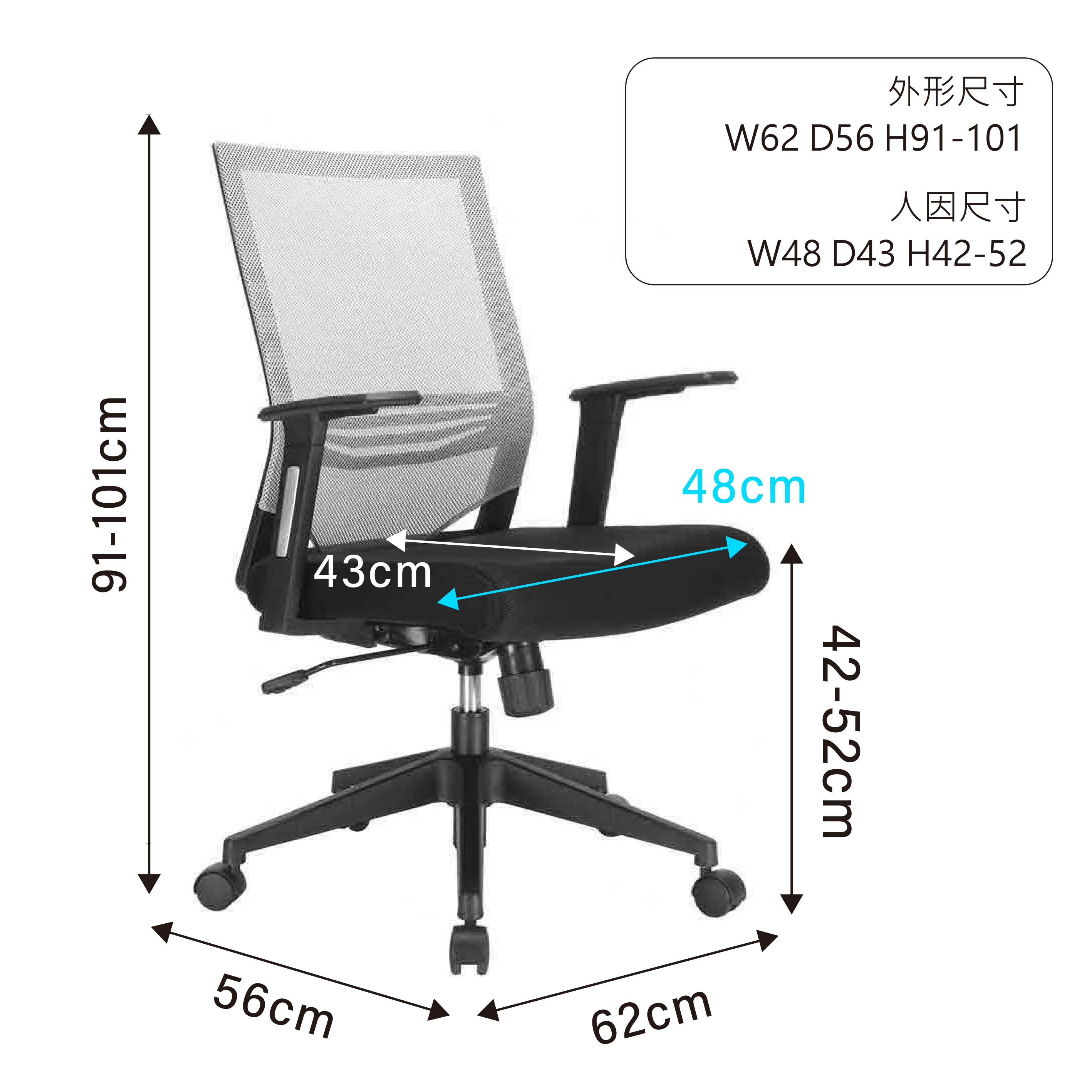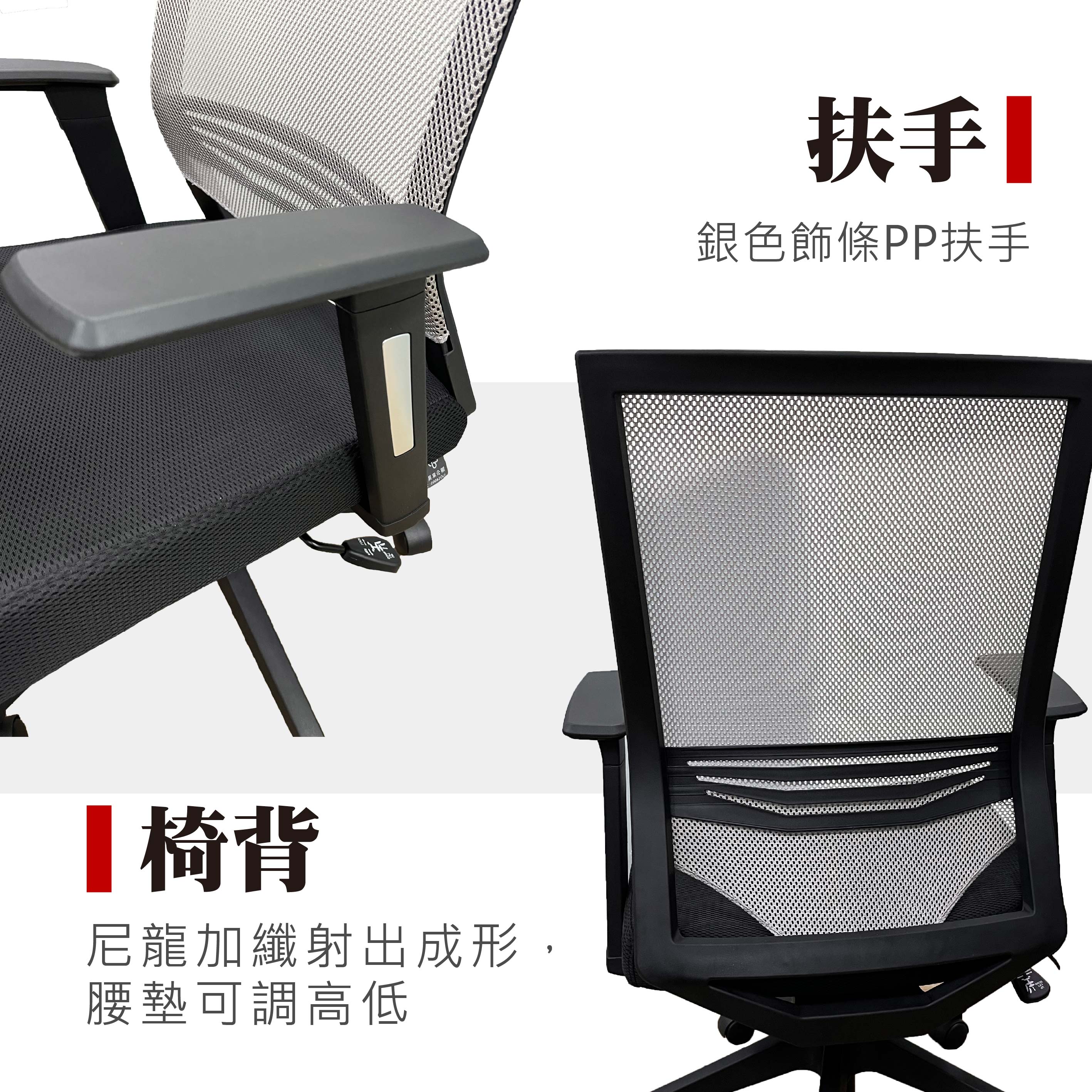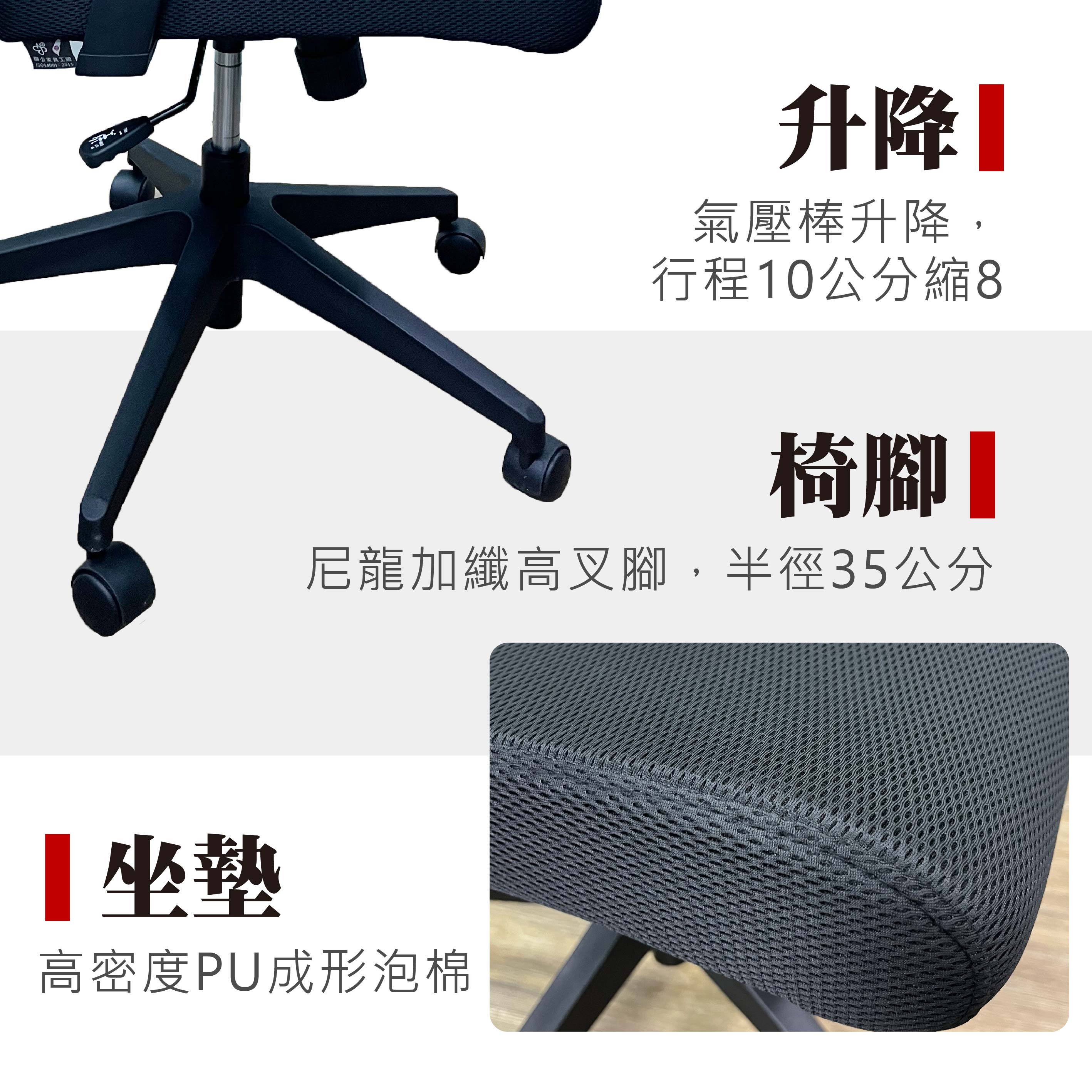 3.背框:PP塑鋼射出成形,腰墊可調高低