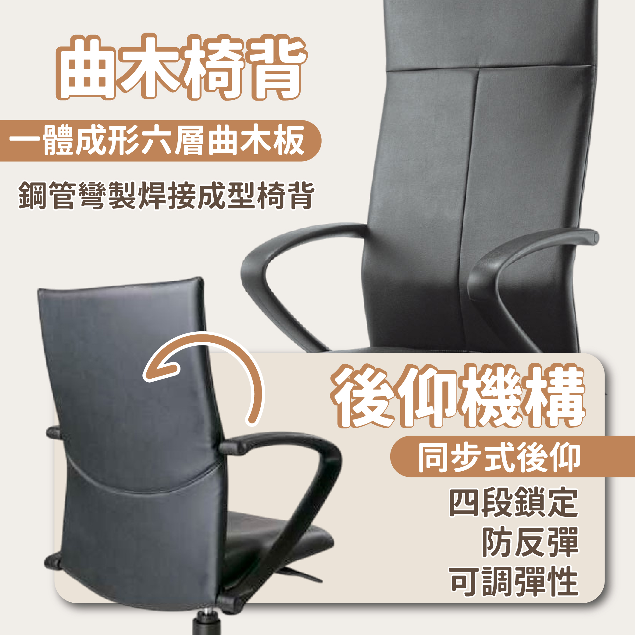 6.機構4段鎖定同步式後仰,附安全防反彈裝置