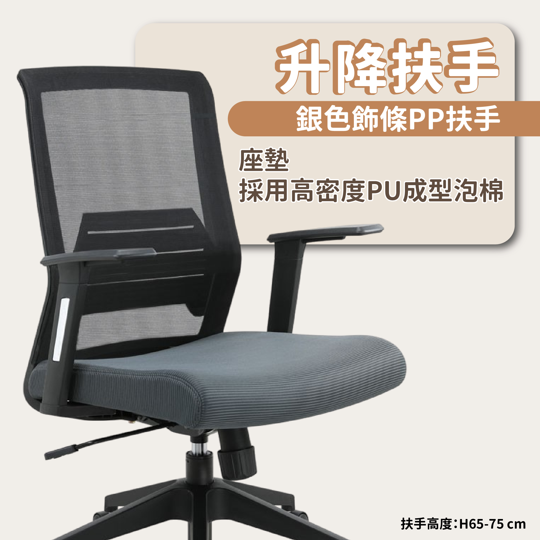 <扶手網椅> 寬61公分/深58公分/高93-103公分