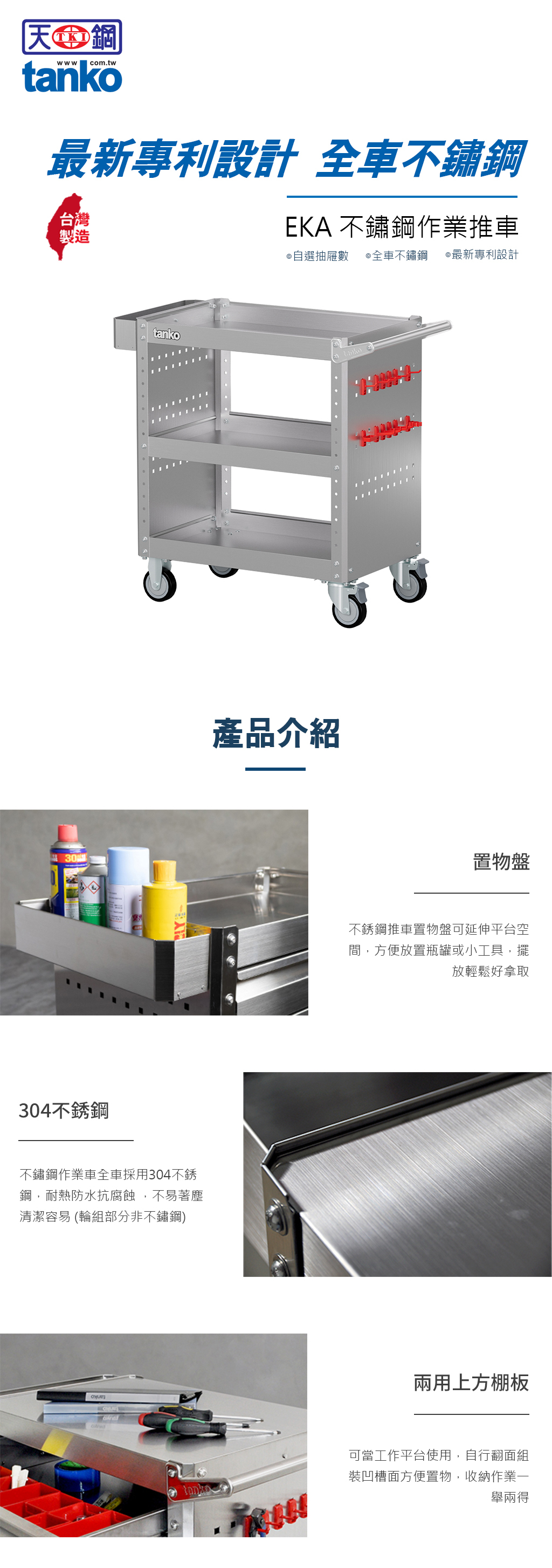 #天鋼#TANKO#不鏽鋼推車#不鏽鋼作業車#不鏽鋼工具車#不鏽鋼零件推車#不鏽鋼製造#台灣製造#工具車#作業推車#零件推車#不鏽鋼#專利設計