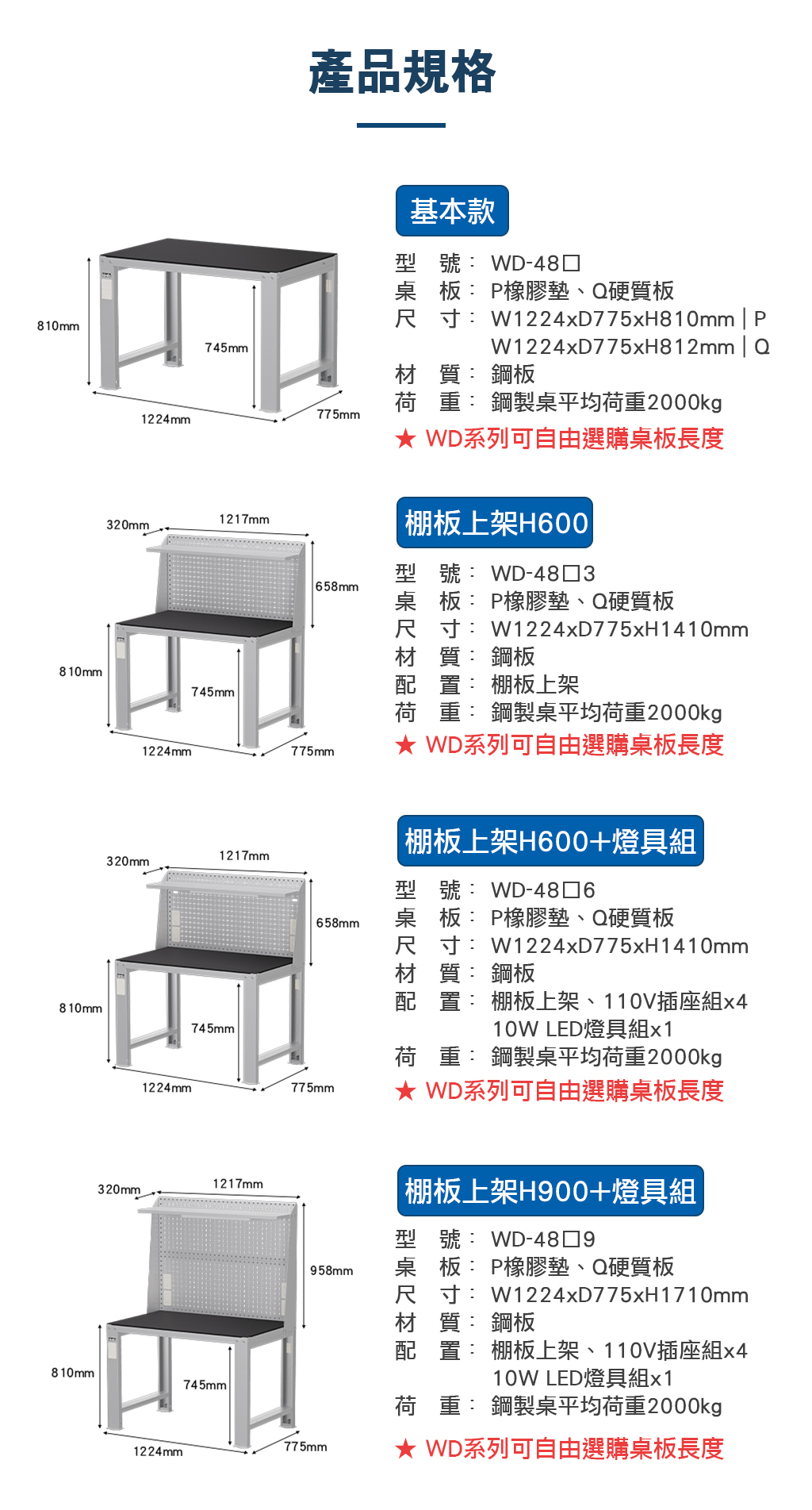 商品名稱 : TANKO 天鋼 WD鋼製工作桌-基本款-1224mm