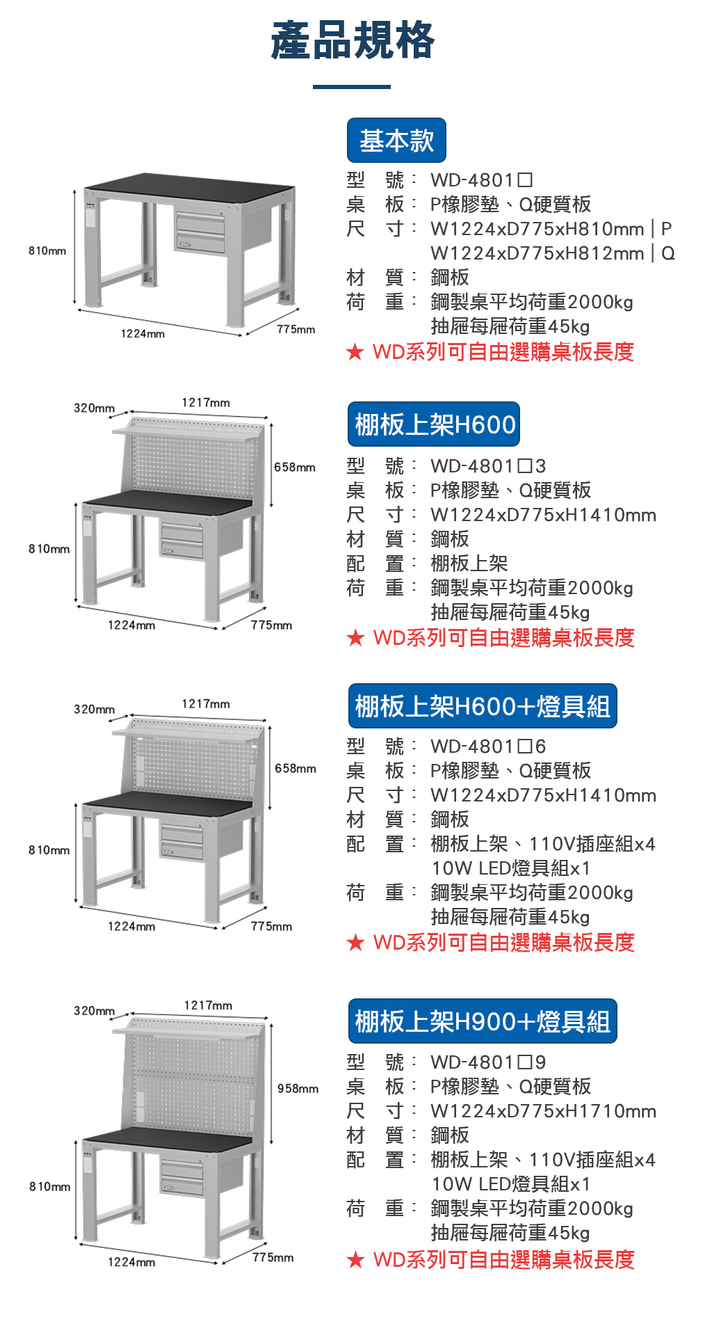 商品名稱 : TANKO WD系列 鋼製工作桌-吊櫃款-1224mm