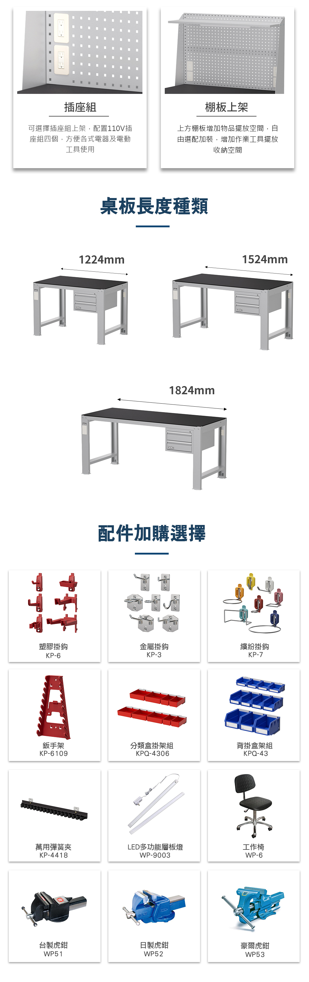 ◆可搭配天鋼各式掛鉤/掛架,創造更多收納空間,幫助工具、零件快速定位