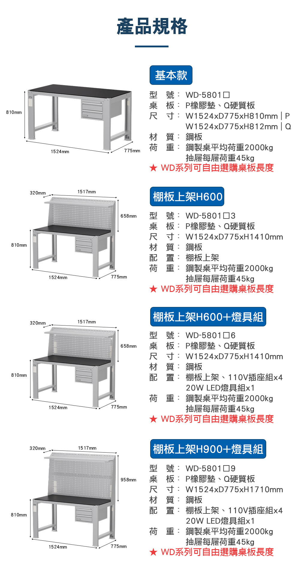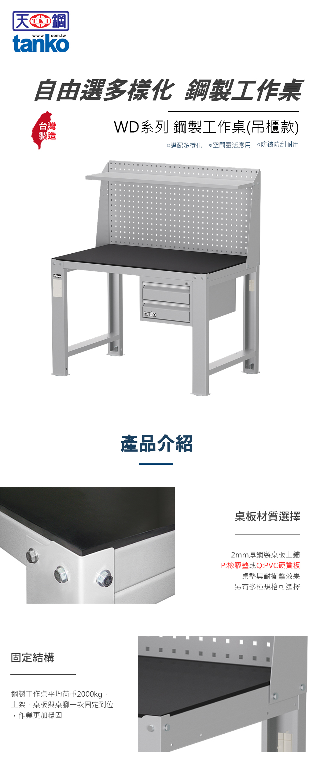商品名稱 : TANKO WD系列 鋼製工作桌-吊櫃款-1524mm