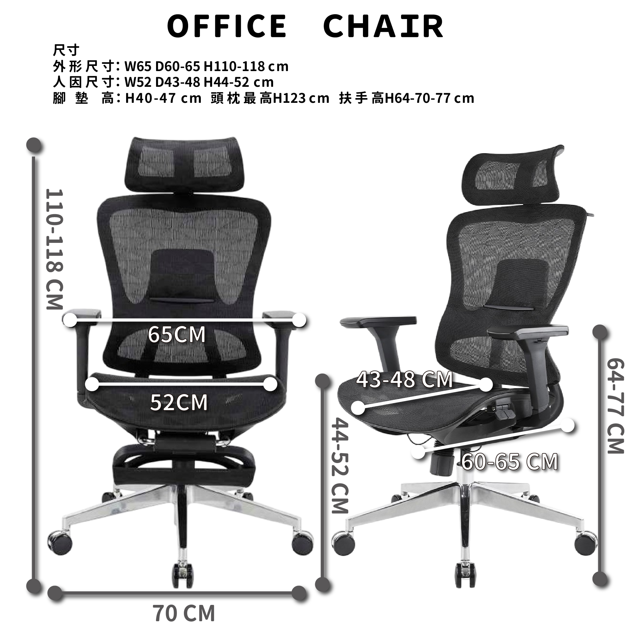 人因尺寸:W52 D43-48 H44-52