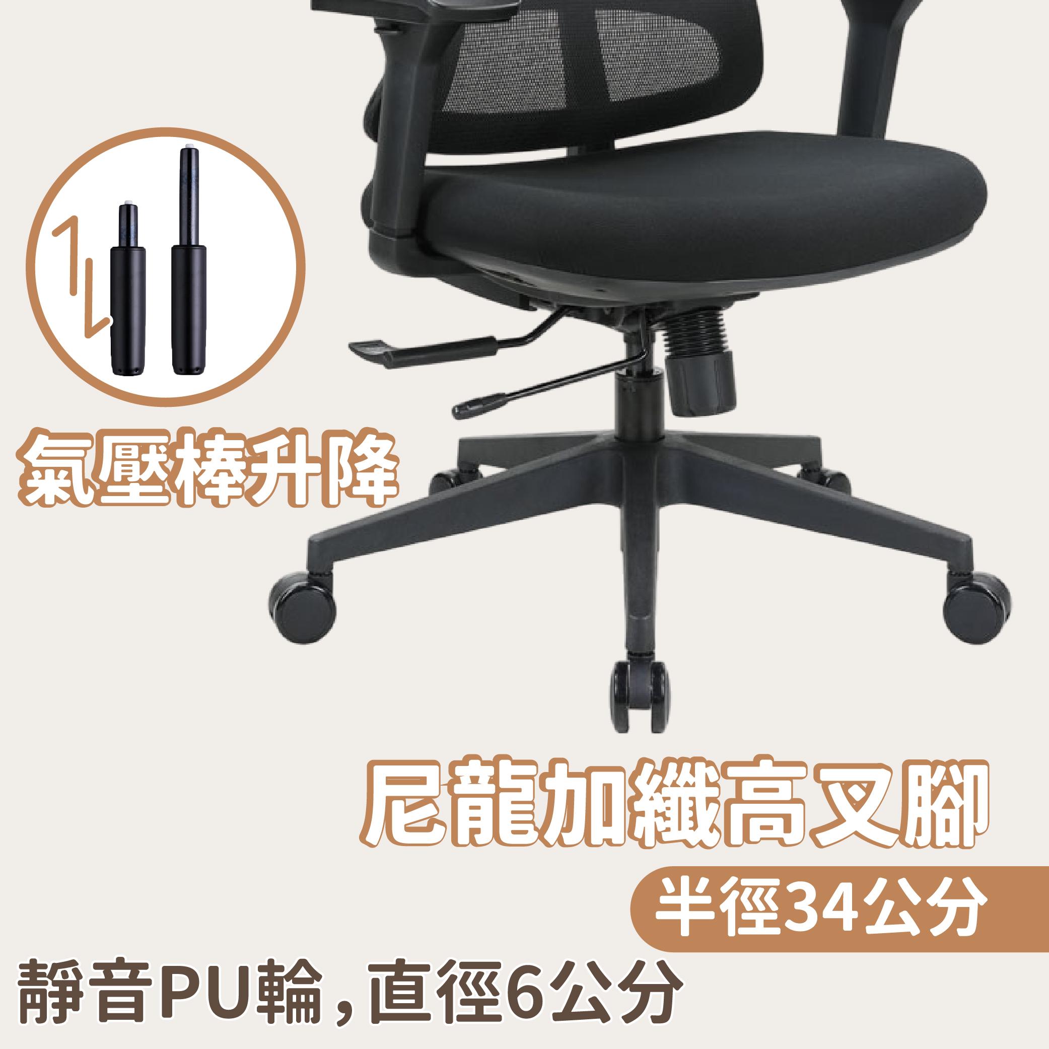 8.椅腳:尼龍加纖高叉腳,半徑34公分