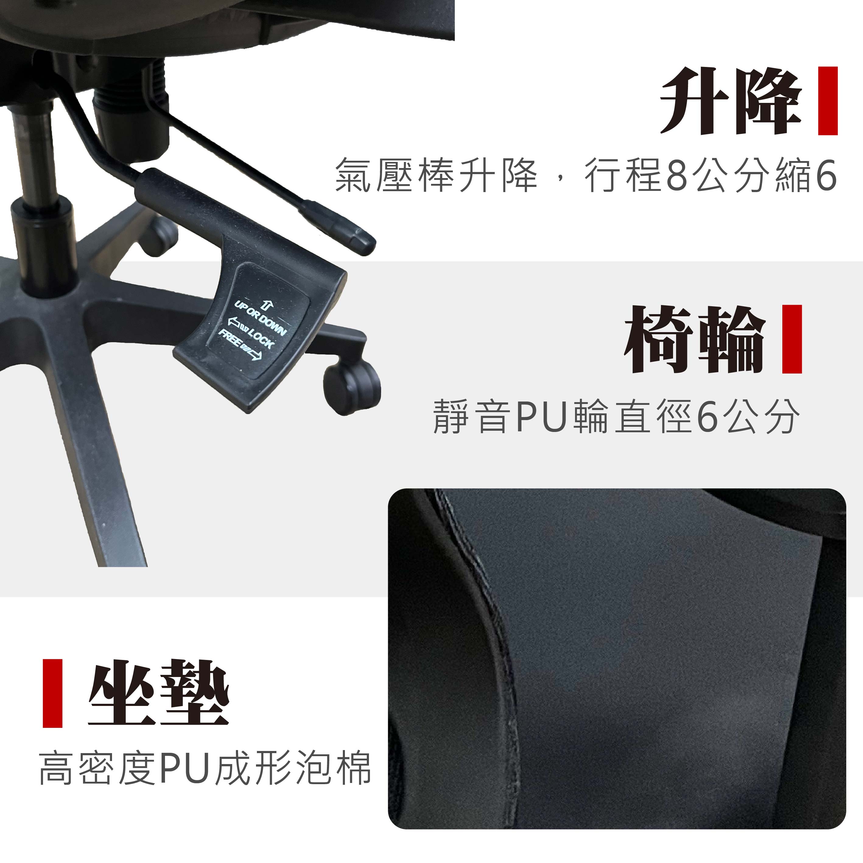 7.升降:氣壓棒升降,行程8公分縮6
