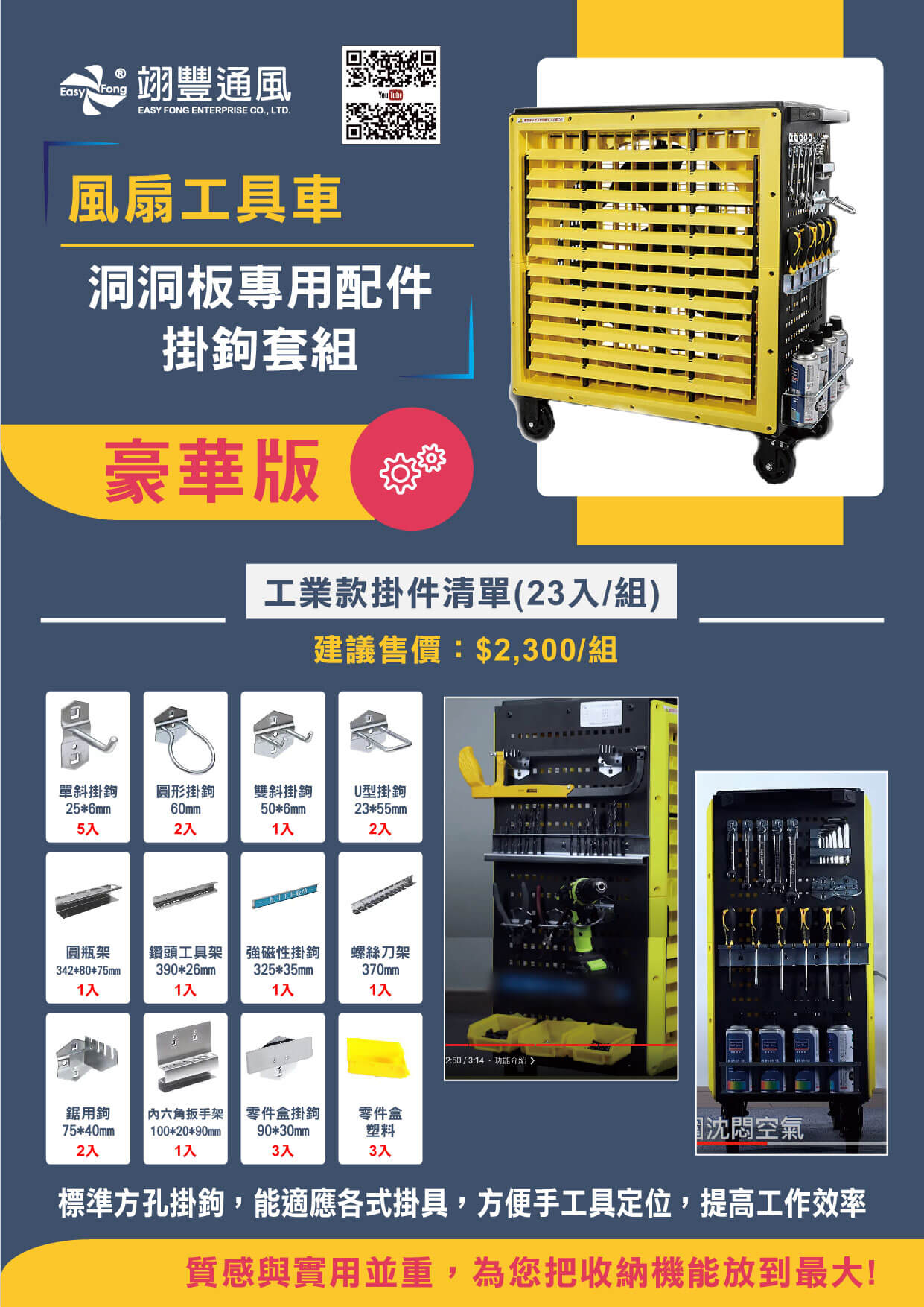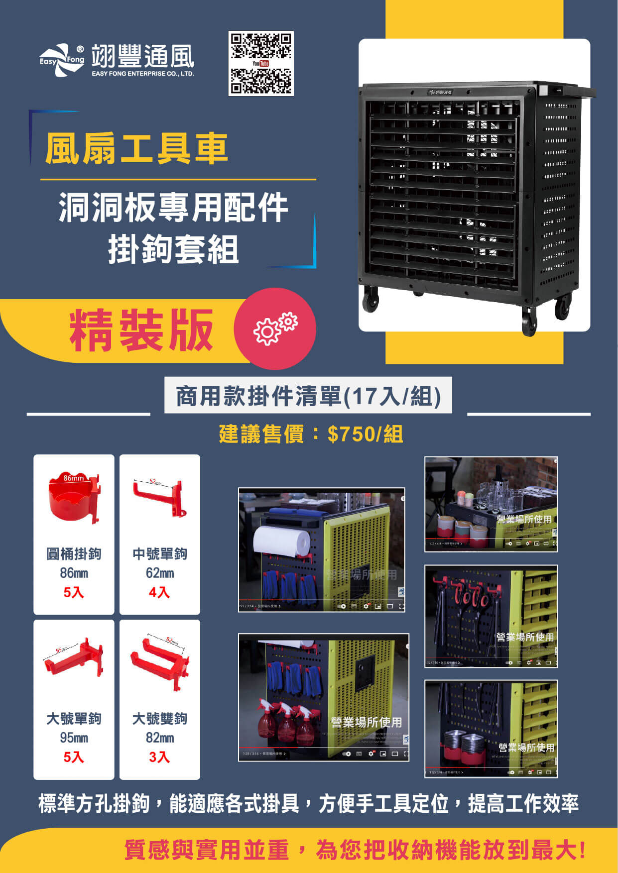 - 可搭配風扇工具車專用洞洞板專用配件掛鉤套組。