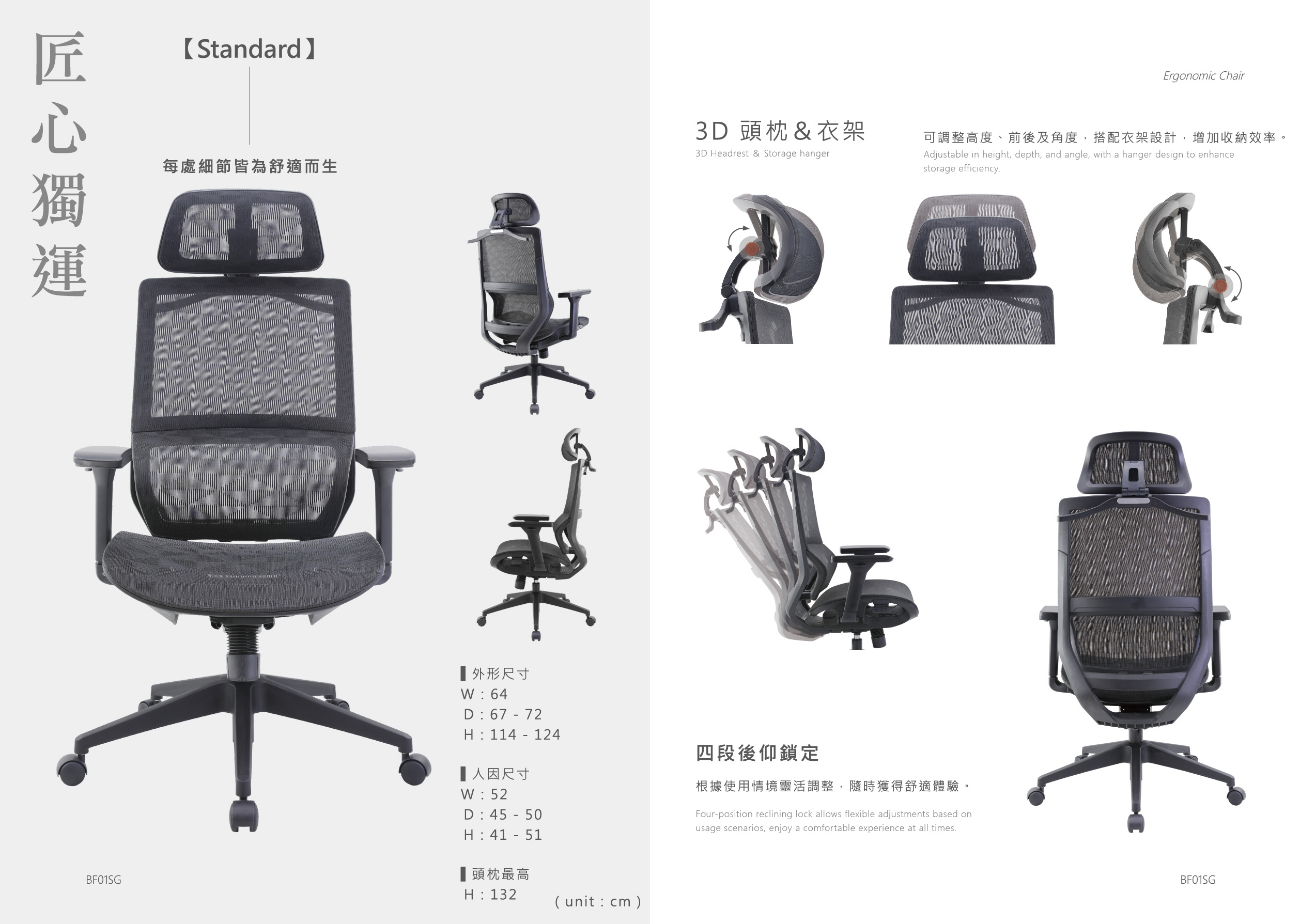 2.頭枕:2D透氣頭枕,可調高度6公分及角度,附衣架