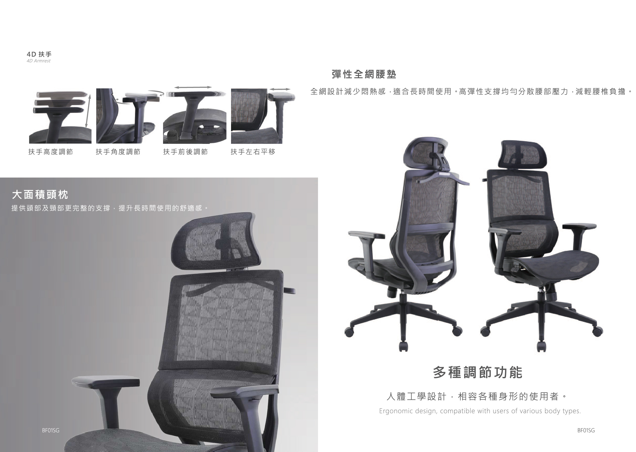 3.椅背:尼龍加纖射出成形,彈性全網腰墊