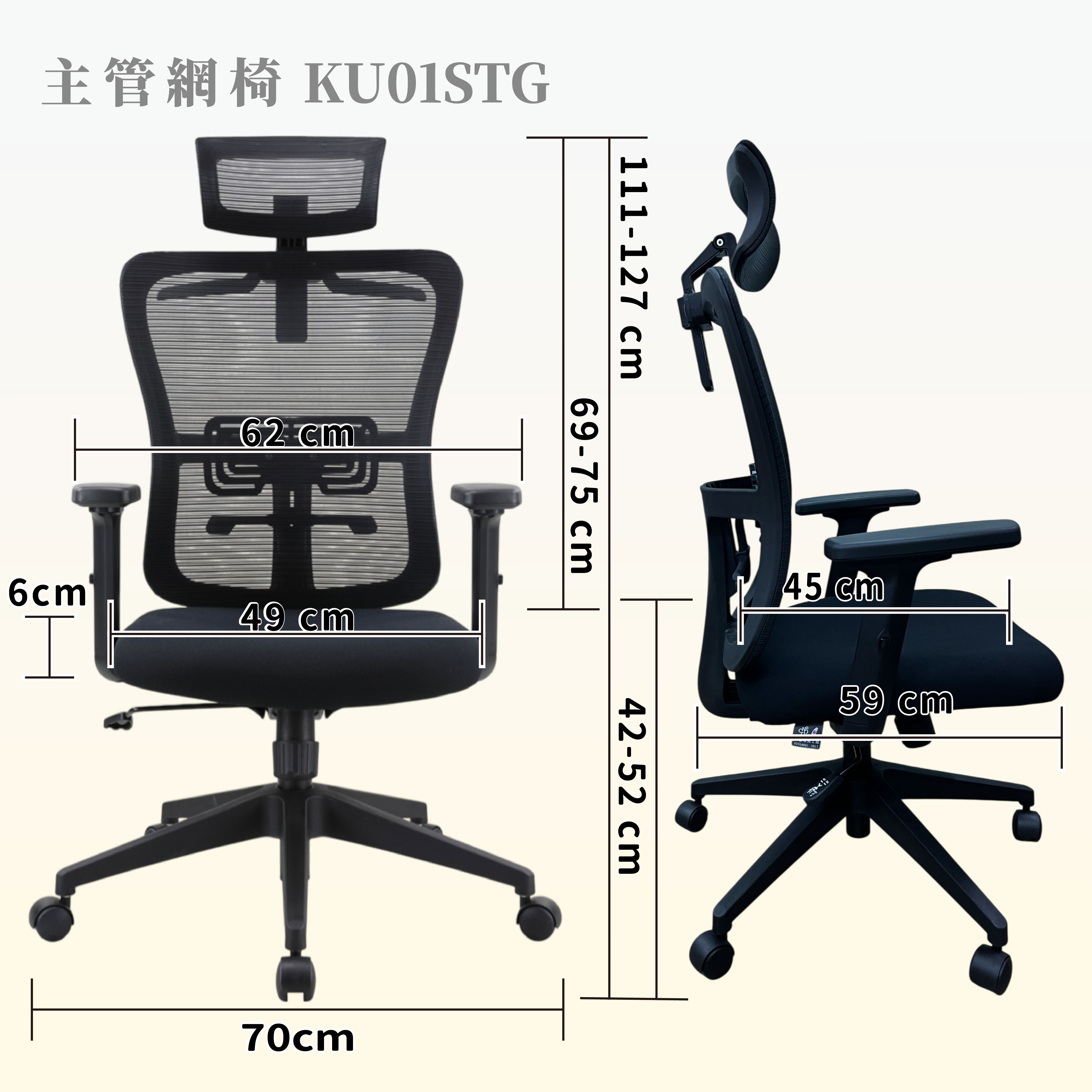 外形尺寸:W62*D59*H111-121cm,頭枕最高H127cm