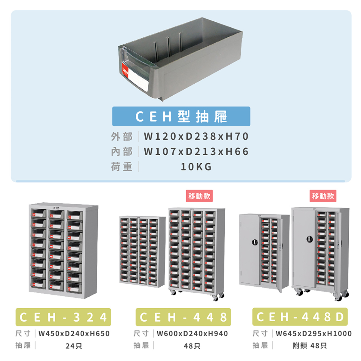 抽屜配置:CEH型抽屜48只