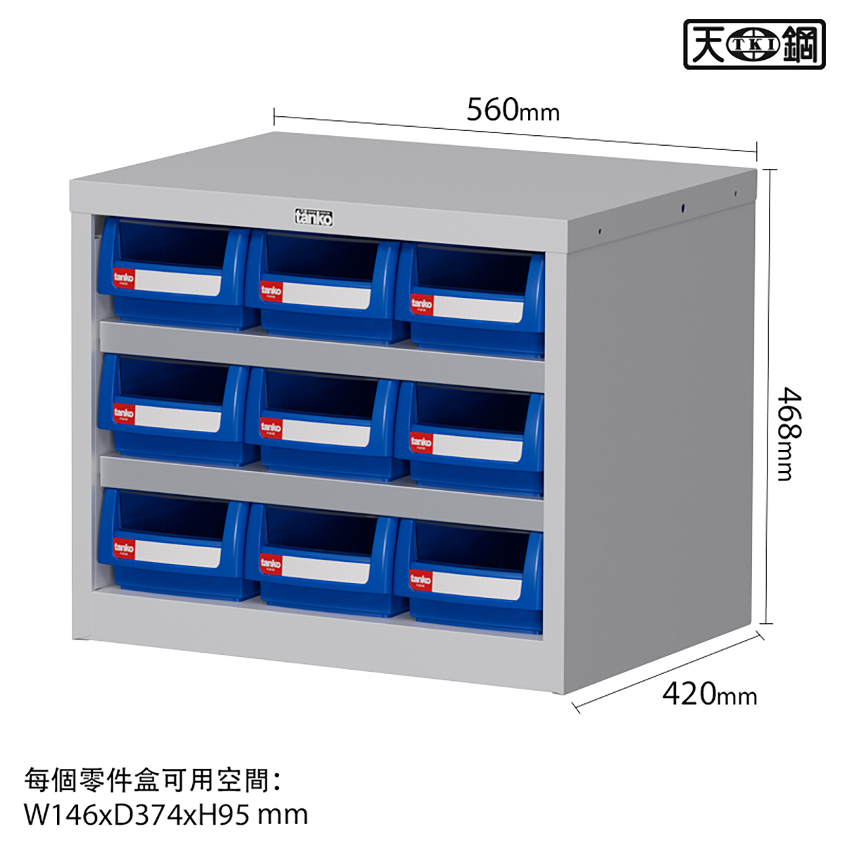 ◆ 透明前窗:大型零件櫃每屜皆搭配標示色卡使用,讓零件分類收納更快速。