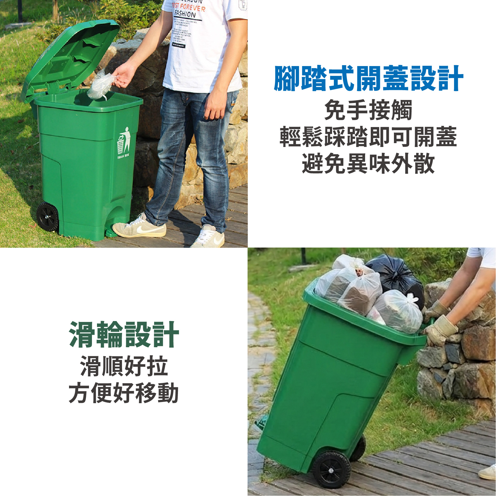 腳踏開蓋:免手接觸,輕鬆踩踏即可開蓋,方便衛生,避免異味外散。