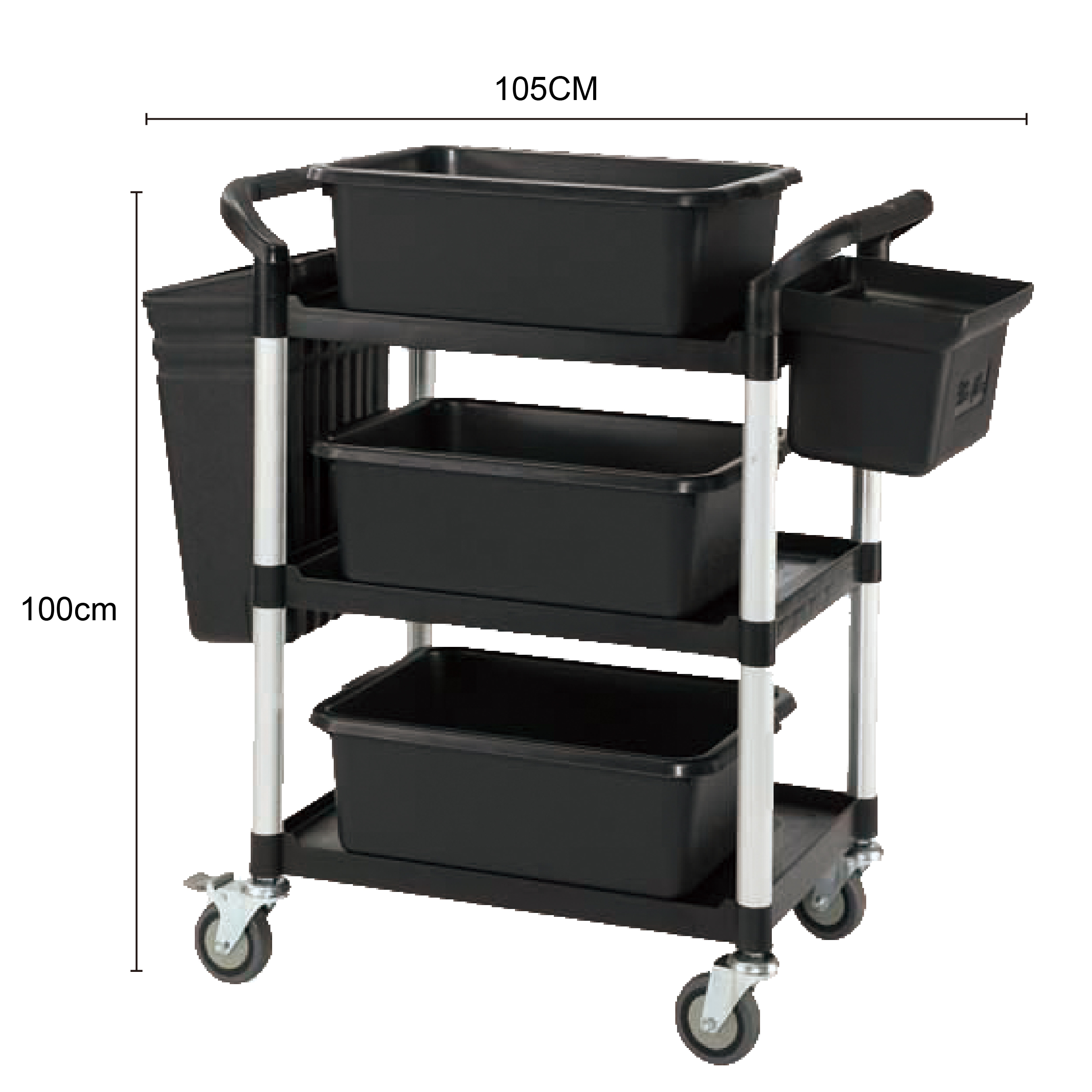 推車兼具收納置物,物流搬運,產品展示,更可延伸多層推車及附加配備來做使用。