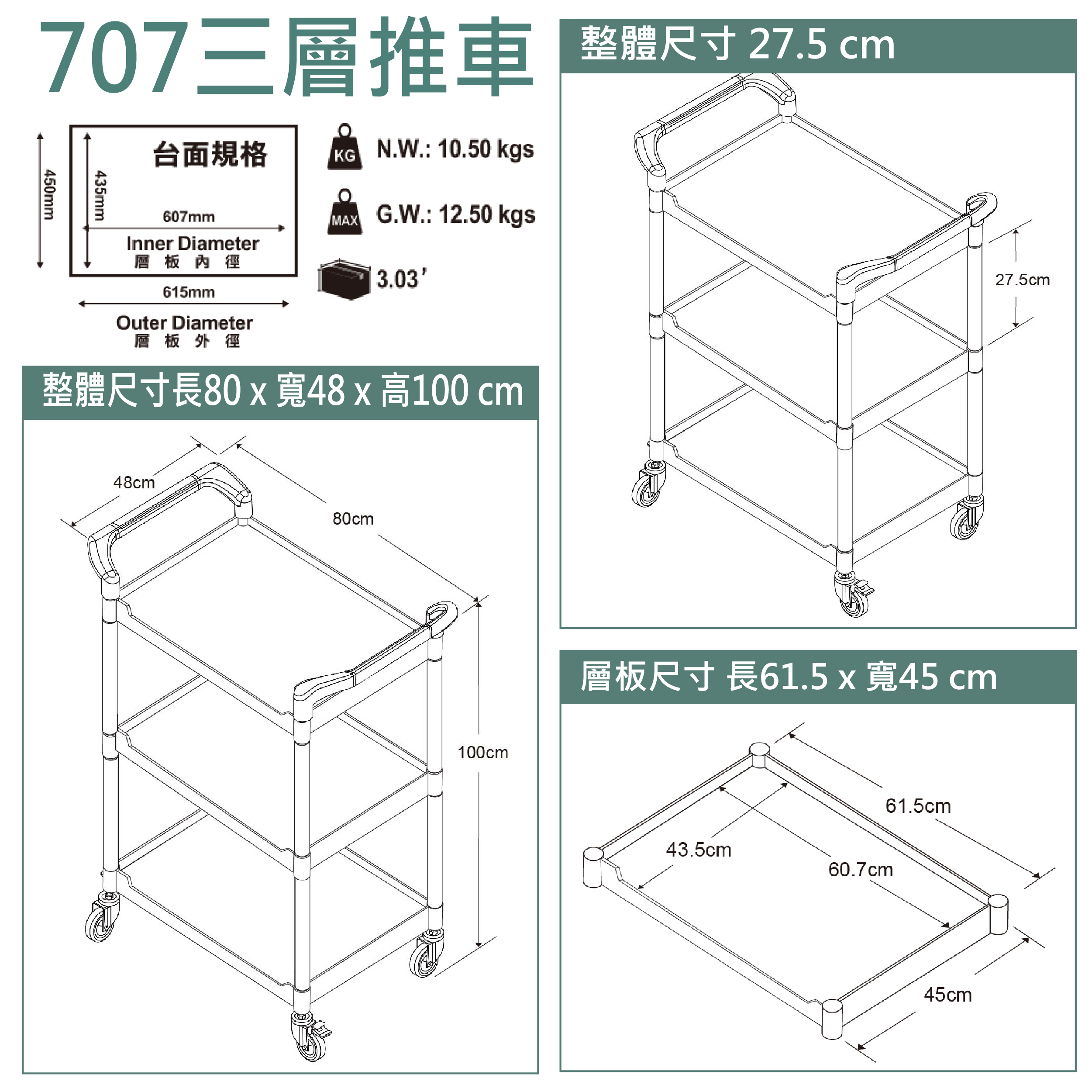 層板尺寸:長61.5 x 寬45 cm