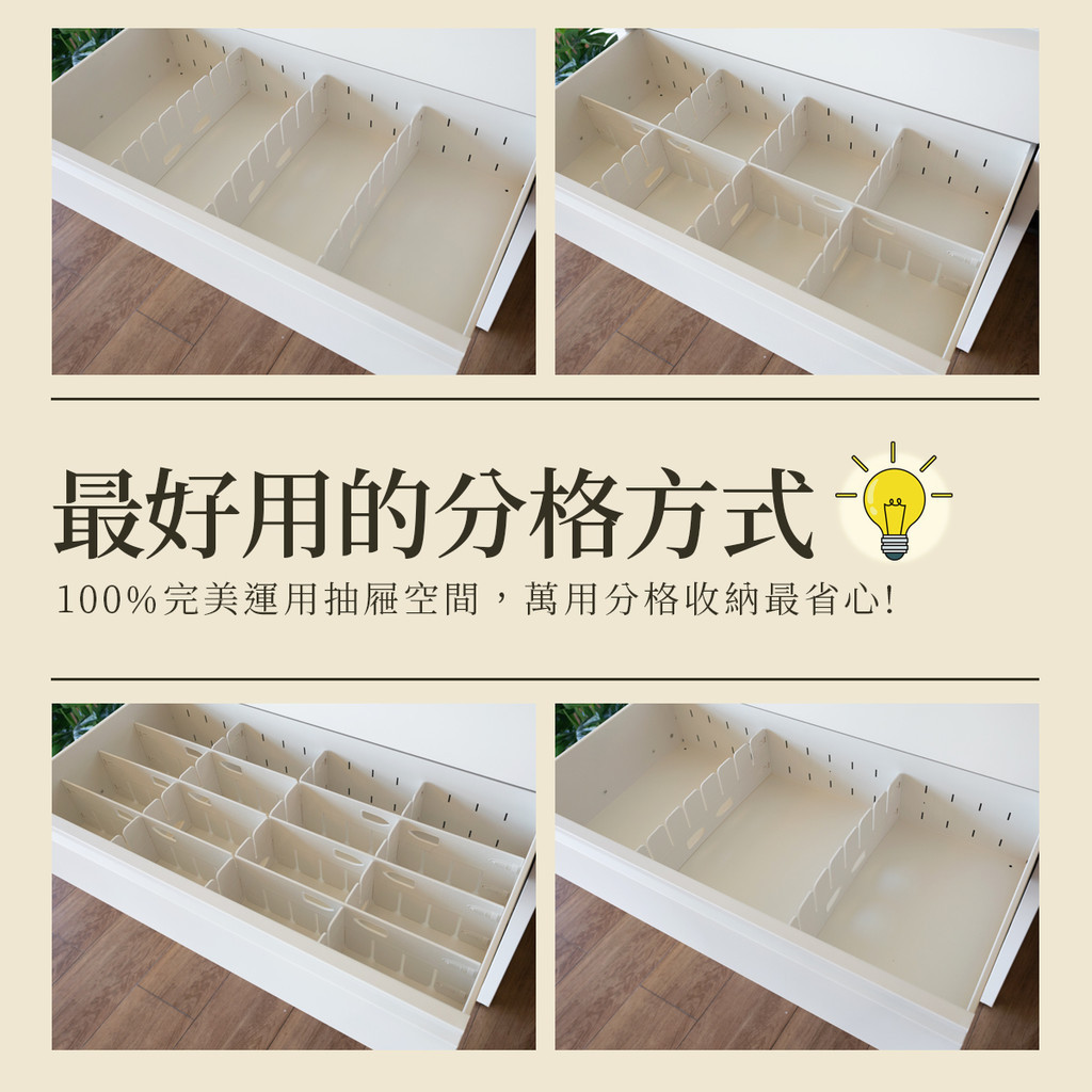 上手分格板:15片,可從45X45mm到800X400mm的大小空間自由分格調整。
