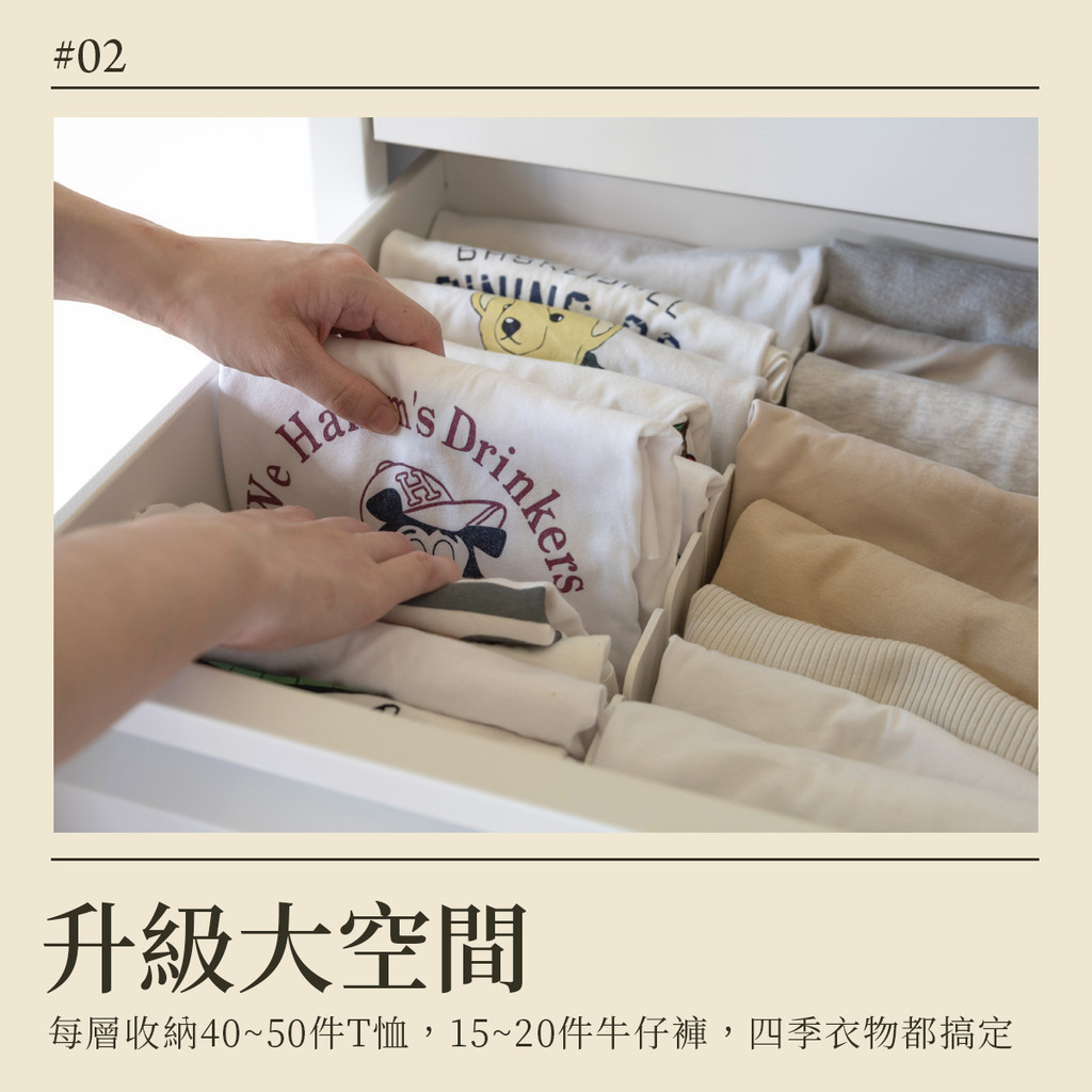 ◼摺衣族最愛的抽屜櫃,內建黃金比例分格板,實現彈性分格收納。