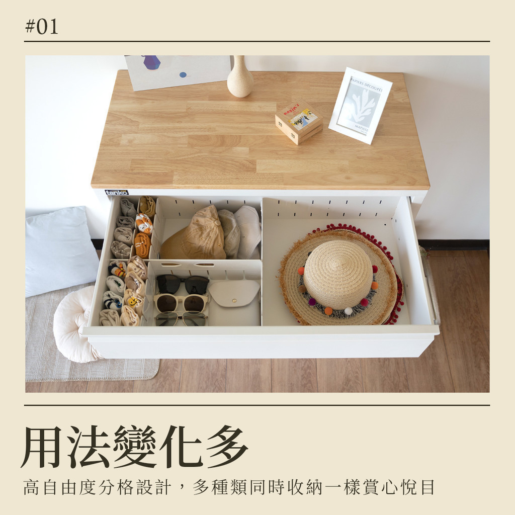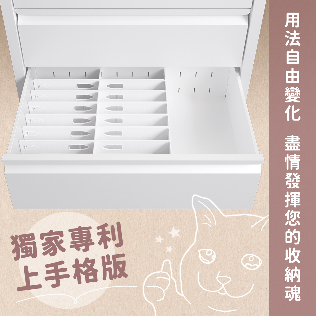 ◼ 獨家專利抽屜分格板,不用收納盒,分格更上手。
