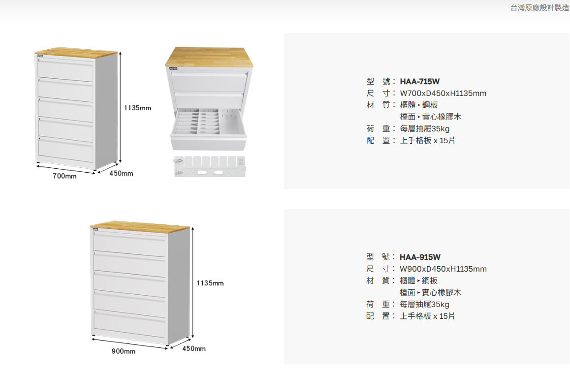 大容量抽屜櫃可100%全開,且每個抽屜的荷重可達35kg。