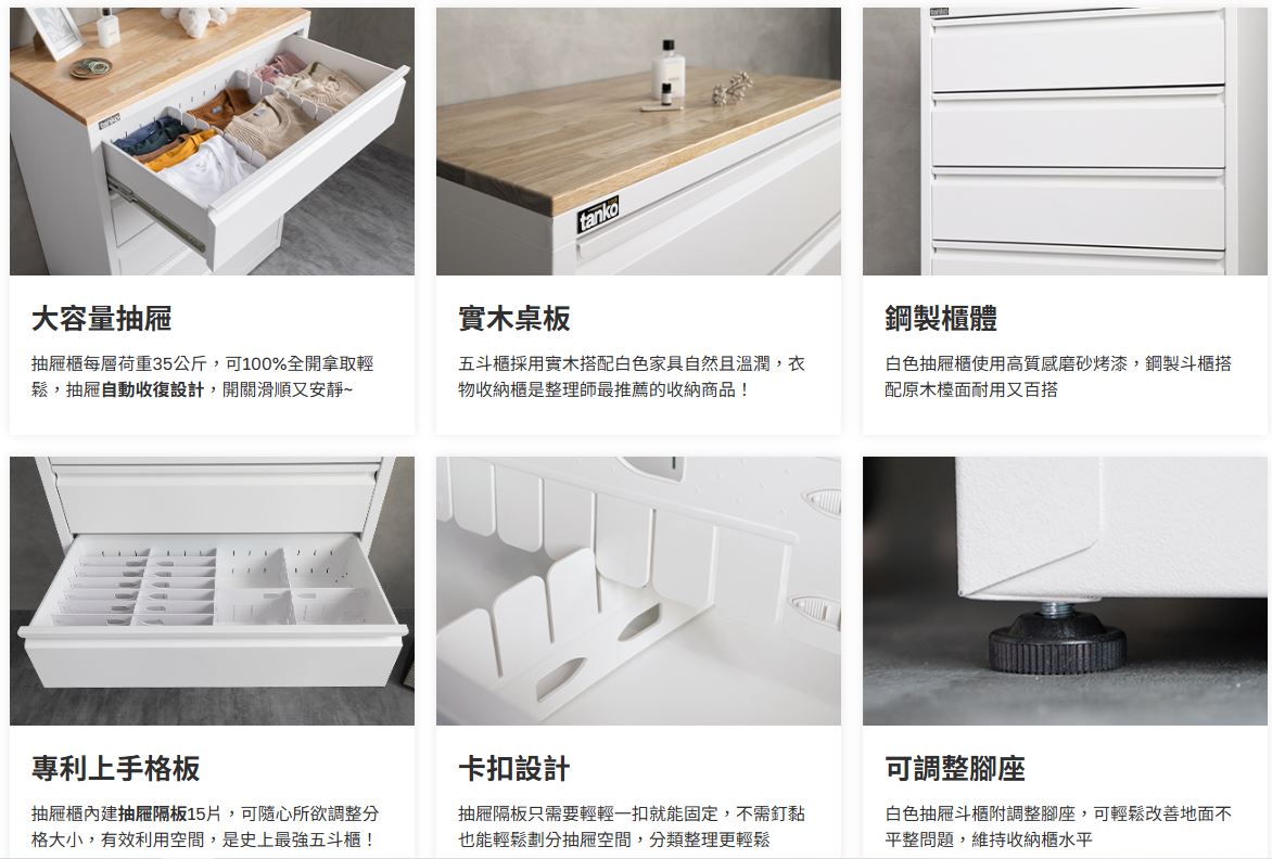 ◼收納五斗櫃沿用天鋼50年的專業技術打造而成,