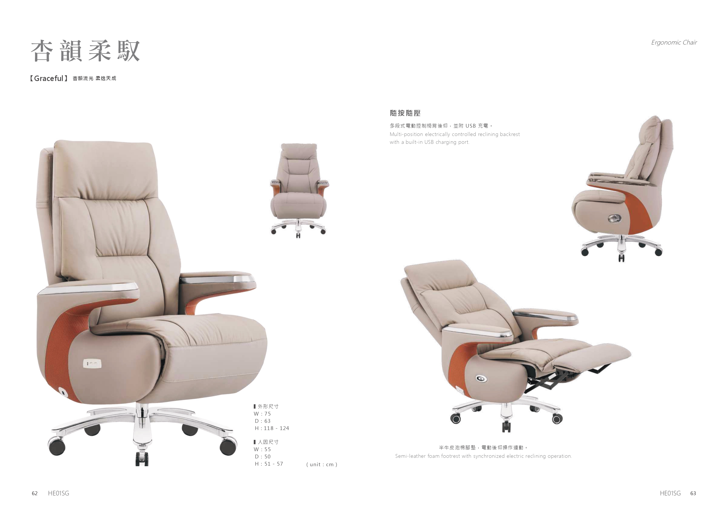 5.機構:電動160度後仰,隨動隨停,附usb充電
