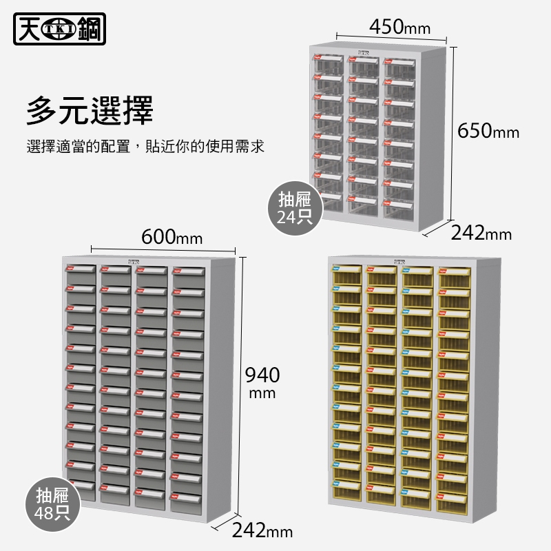 ◆ 活動隔板:零件櫃每屜皆附一片隔板,可自由分隔屜內空間,增加螺絲分類功能