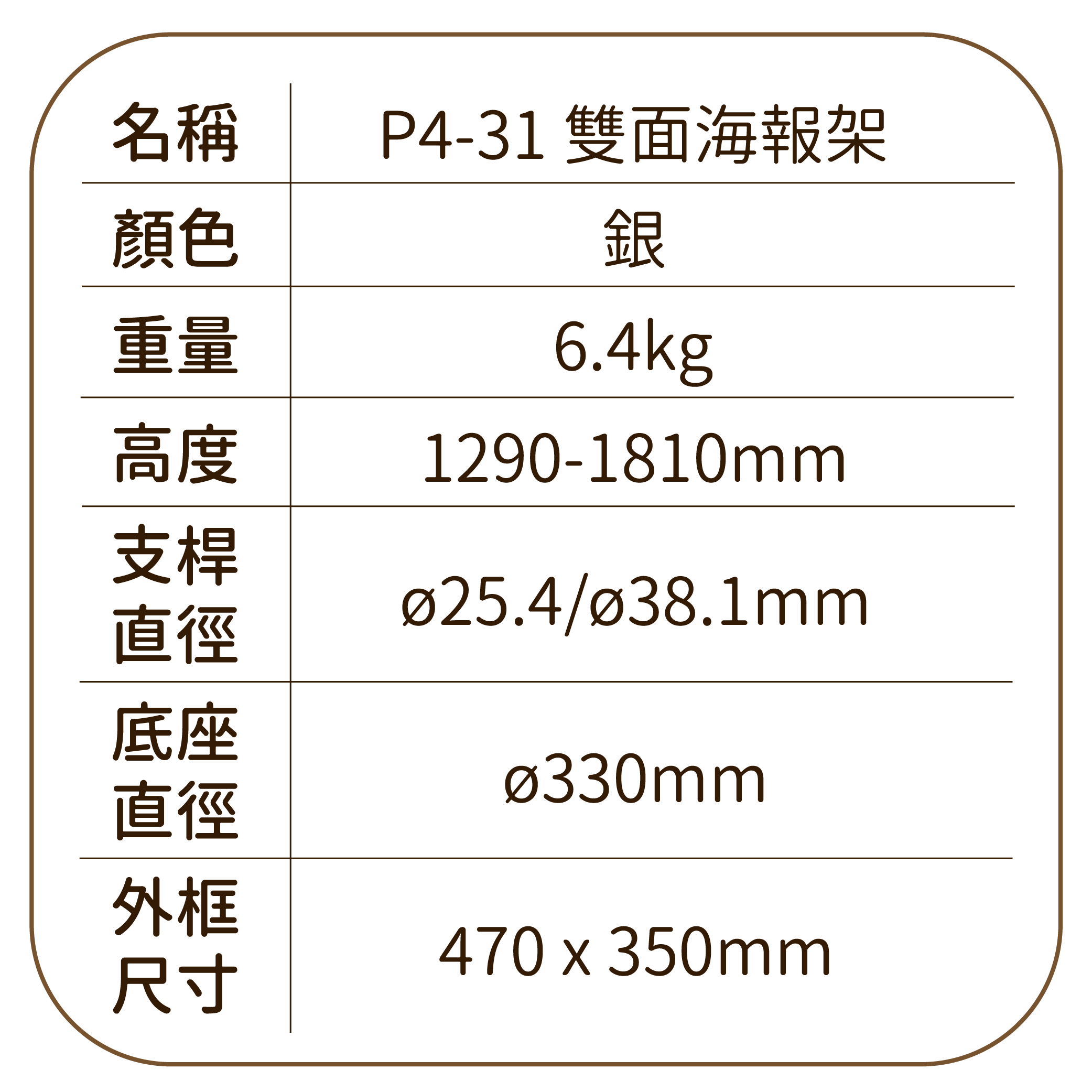 鋁框 A3告示牌 直向式 圓形底盤 P4-31