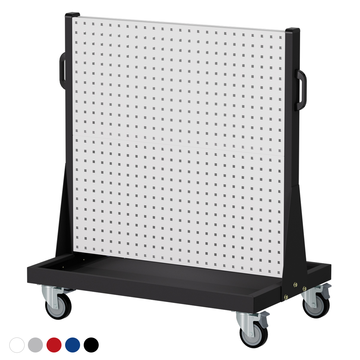 ◆ 把手:洞洞板推車兩側皆配置把手,加強機動性使用,方便移動。