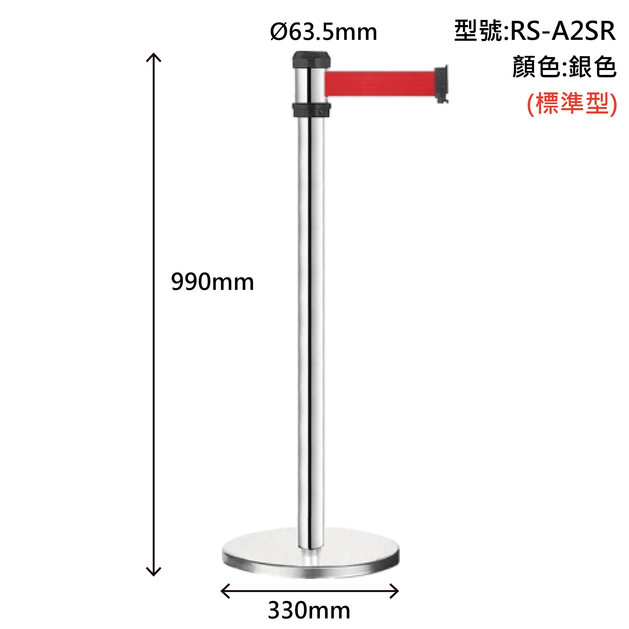 RS-A3SR 萬向伸縮帶欄柱(銀柱) 只有紅色.黑色織帶