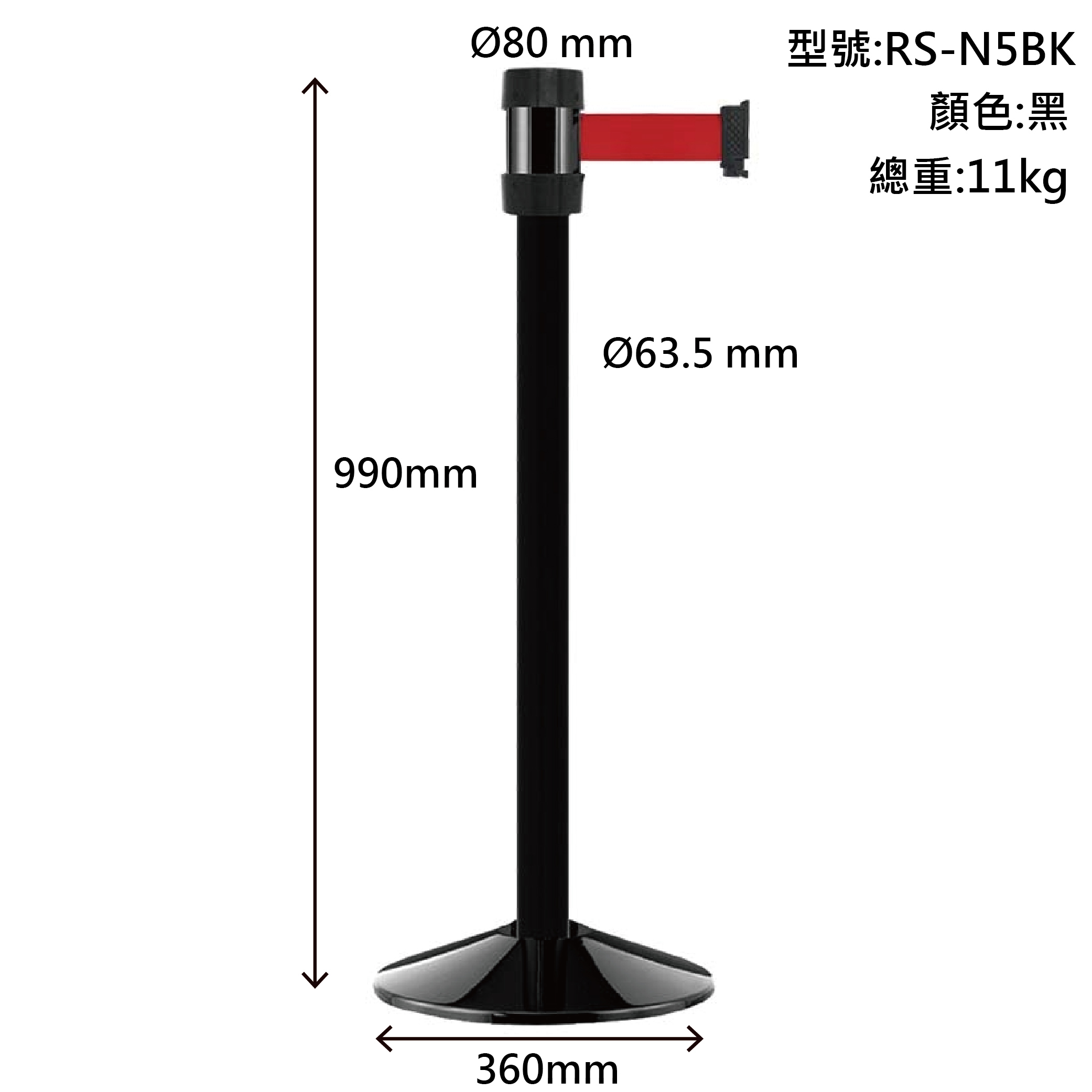 萬向欄柱(黑柱)經濟型 RS-N5BK(500cm)織帶只有紅色.黑色可選